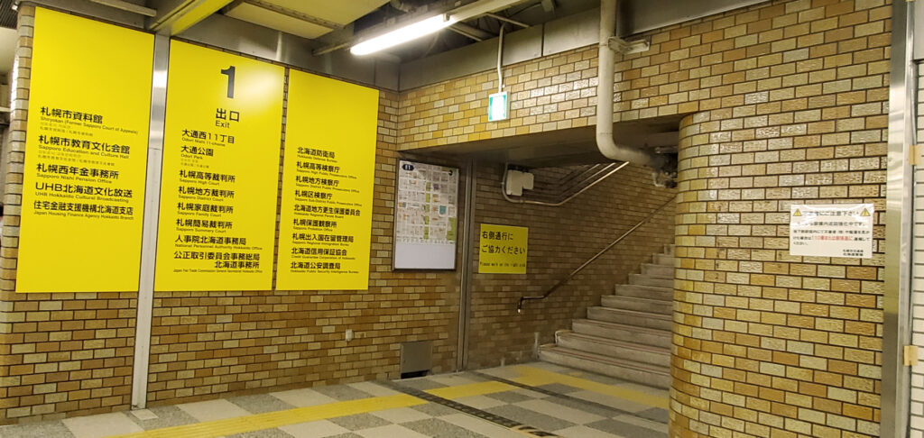 ①地下鉄東西線「西11丁目駅」で降車されましたら、「1番出口」から地上へお上がりください。