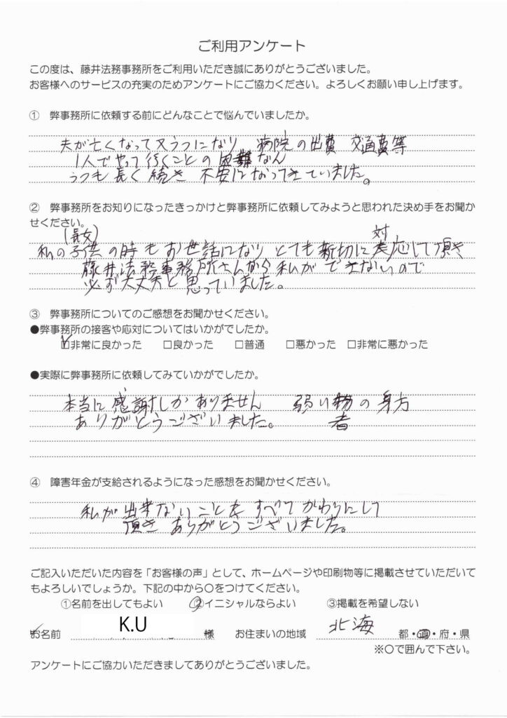 - 障害年金が支給されるようになった感想をお聞かせください。